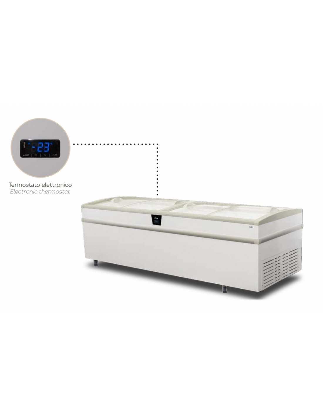Isola refrigerata - Mod. GT EVO 250 - Capacità Lt 1037 - Temperatura -18° / -23° C - Refrigerazione statica - Classe climatica 7 - Sbrinamento manuale - Dimensioni cm 252 x 94.4 x 84.8 h