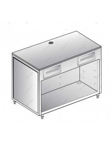 Banco macchina caffè - Mod. BMC121367-3000 - Struttura in acciaio inox 18/10 AISI 304 - N. 1 cassetto neutro - N. 1 battifondi caffè - Vano inferiore aperto - Dimensioni cm 125 x 67 x 90 h