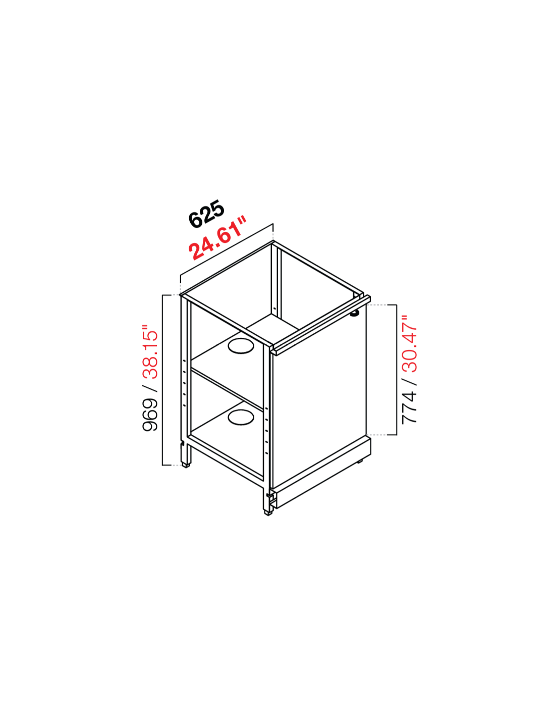 Retro base neutra - Acciaio inox - Anta - Dimensioni cm 62.5 x 39.6/54.6/64.1 x 100 h
