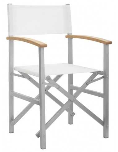 Sedia per esterno - Struttura pieghevole in alluminio verniciato - Braccioli in legno - Tessuto in textilene - cm 43 x 44 x 91 h