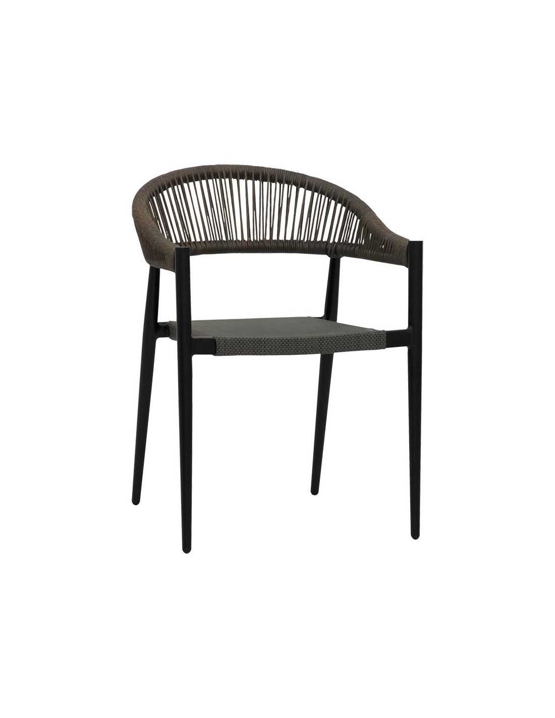 Sedia per esterno - Struttura in alluminio verniciato - Seduta in textilene - Schienale in corda - Dimensioni cm 49 x 45 x 76 h