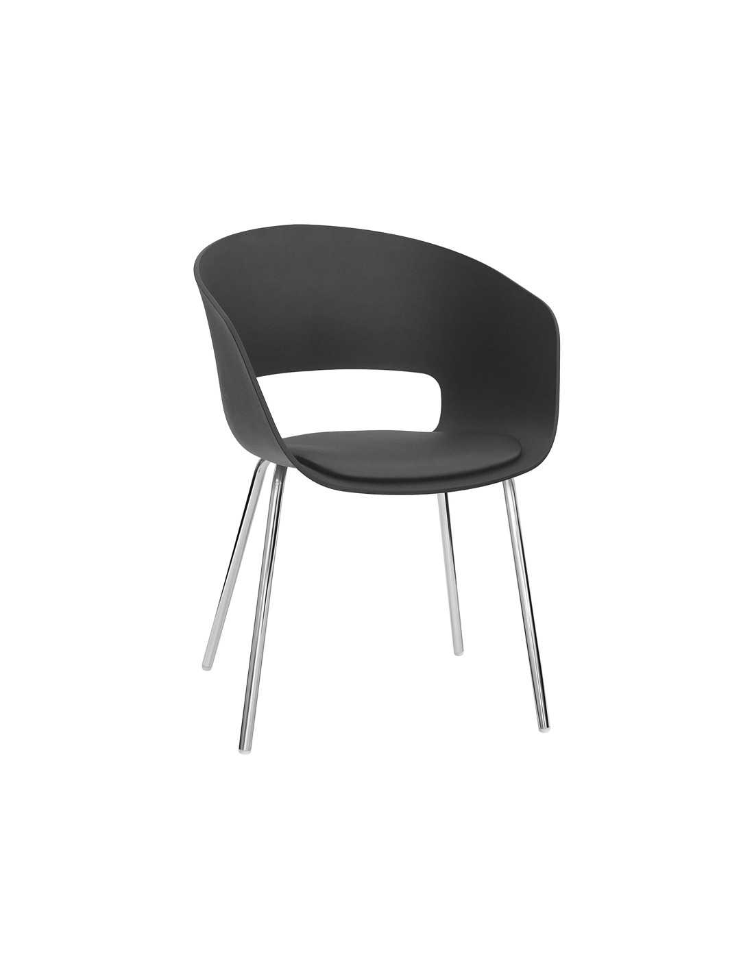 Sedia per interno - Struttura in metallo cromato - Scocca in polipropilene - Cuscino in ecopelle - Dimensioni cm 42 x 42 x 77 h