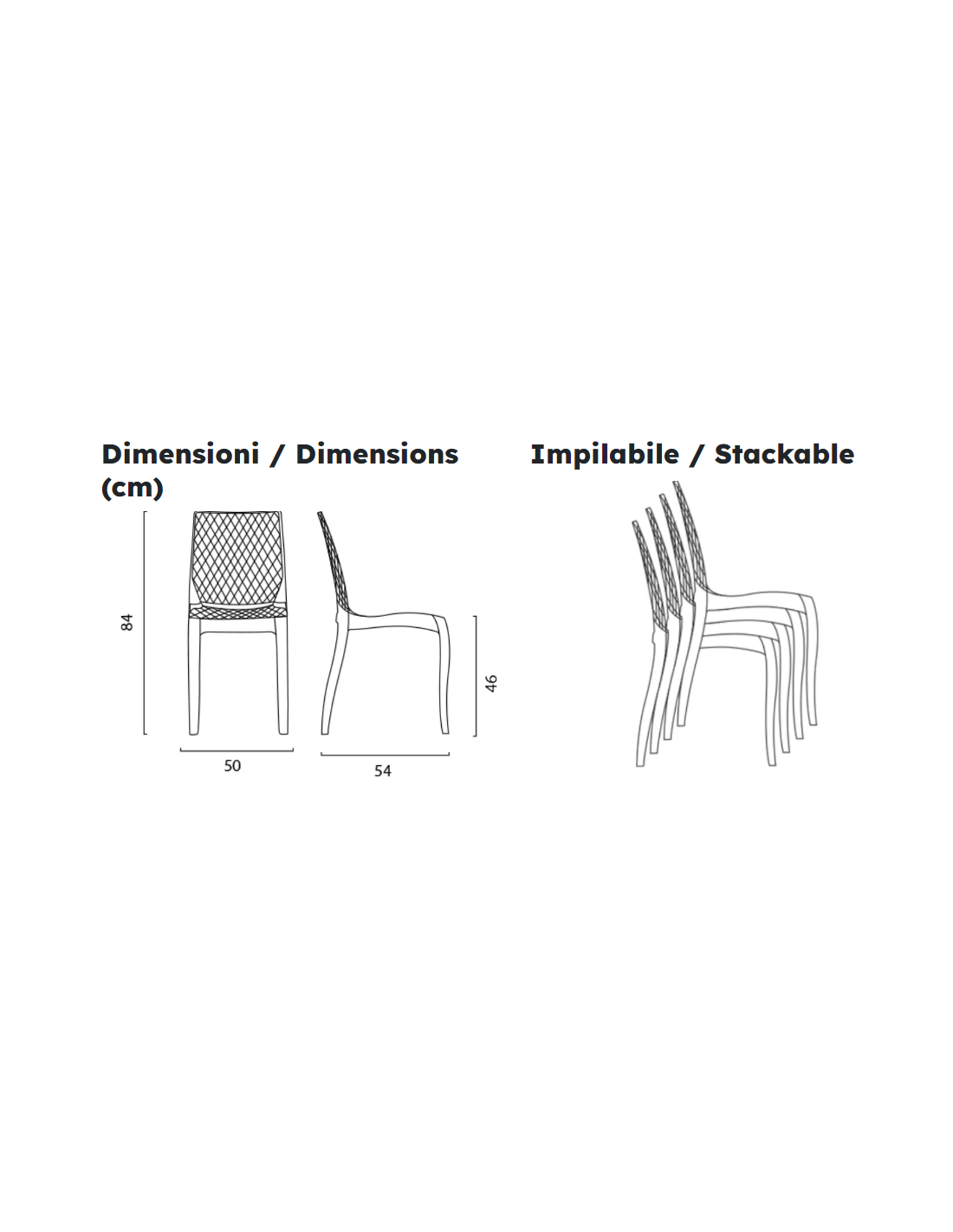 Sedia in policarbonato trasparente - Dimensioni cm 50 x 54 x 84 h