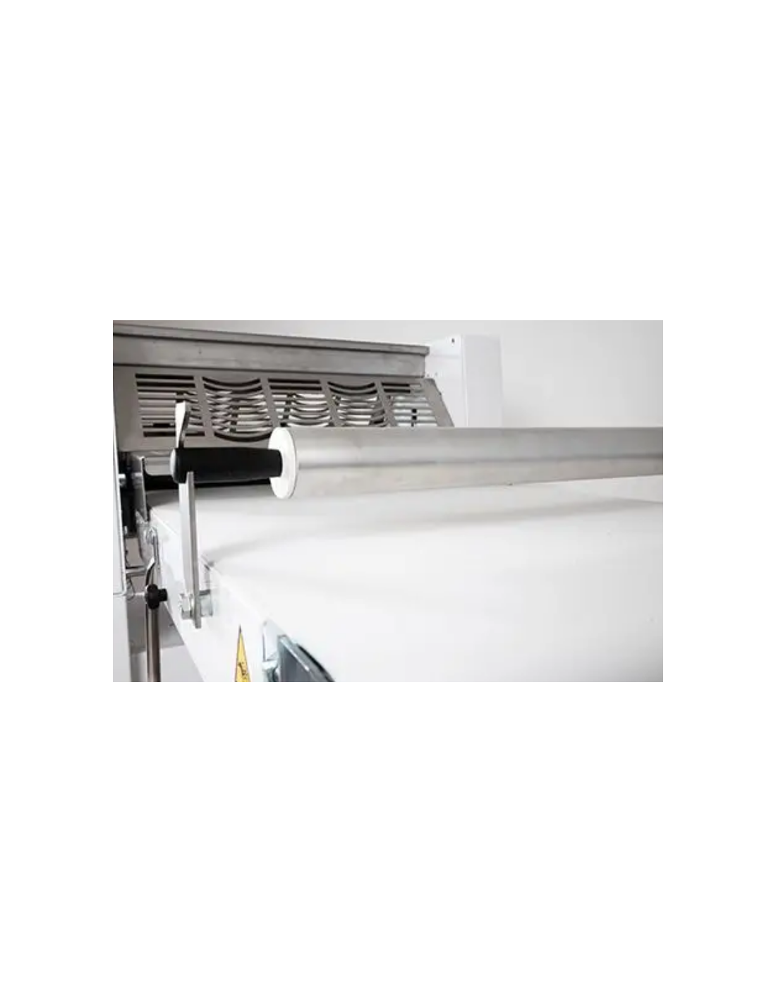 | Utilizzando il movimento del nastro trasportatore, l'impasto verrà avvolto sul mattarello (fornito) per essere trasportato sul banco di lavoro per la successiva lavorazione | |
