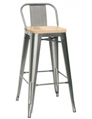 Sgabello per interno - Struttura in metallo verniciato - Seduta in legno - Dimensioni...