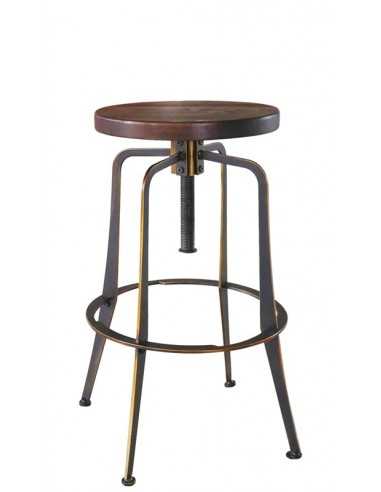 Sgabello da interno - Metallo verniciato effetto anticato - Seduta regolabile in legno - cm 33 x 33 x 65/78 h