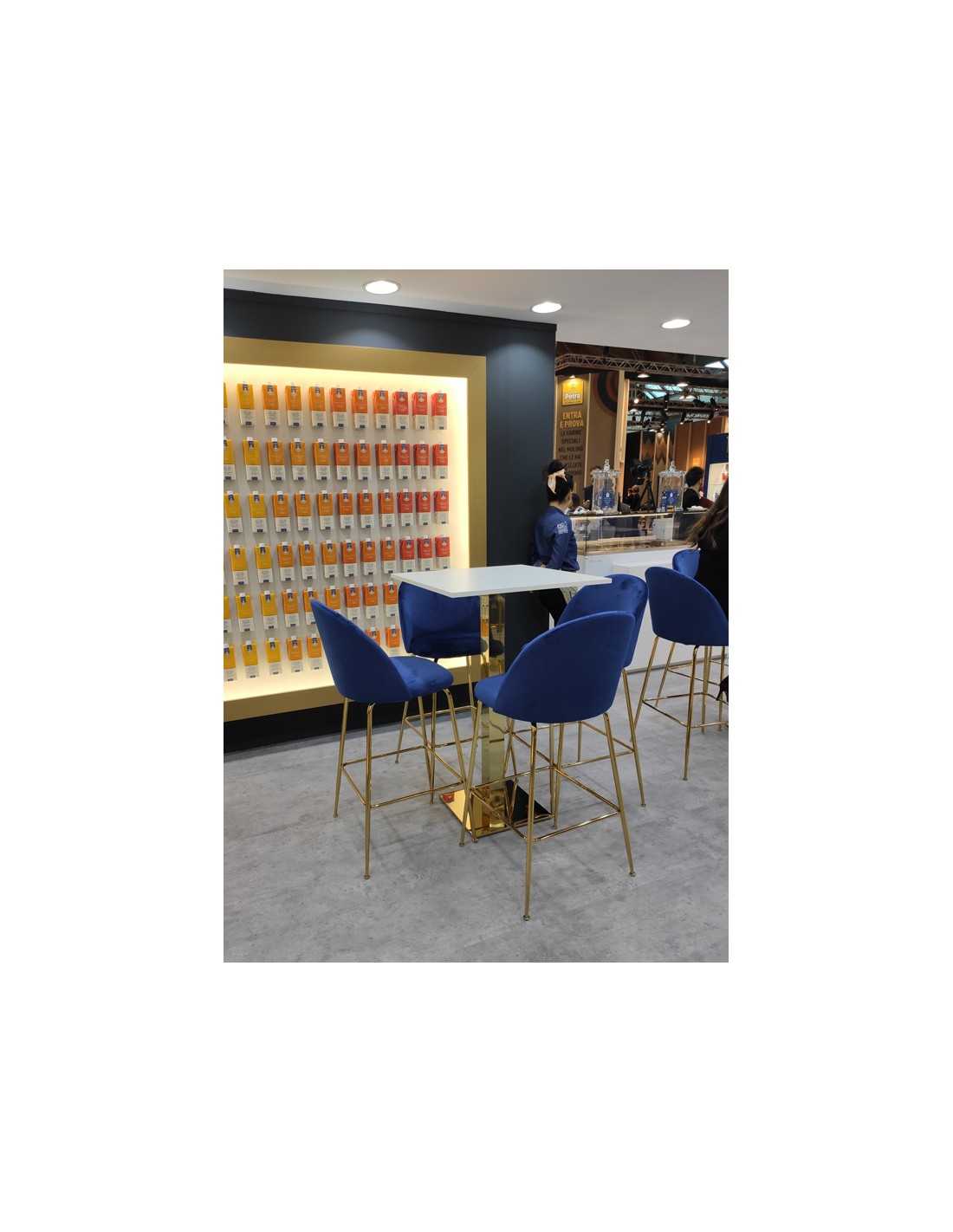 Sgabello da interno - Struttura in metallo ottonato - Rivestimento in velluto - Dimensioni cm 44 x 42 x 98 h
