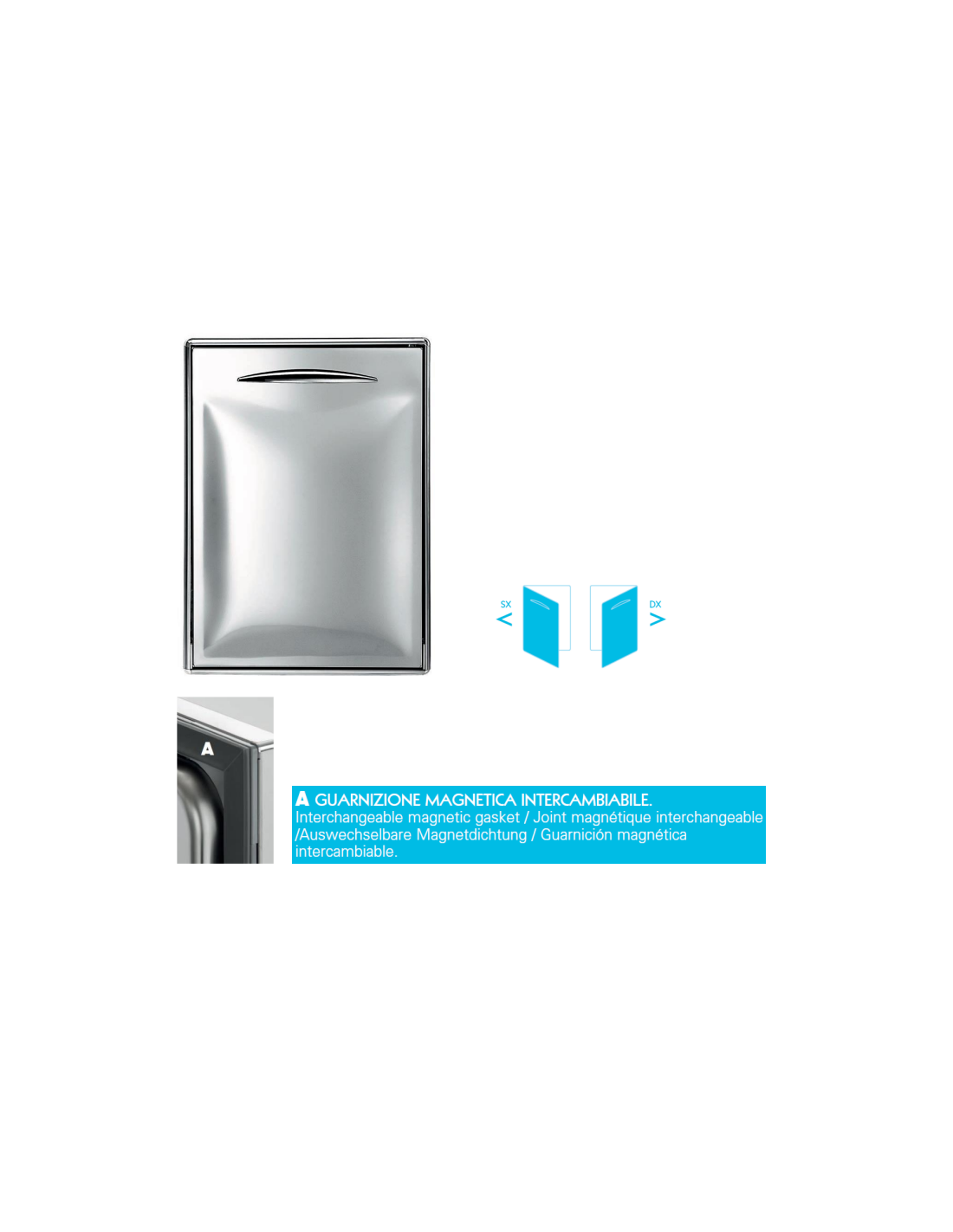 Gli sportelli sono interamente realizzati in acciaio inossidabile AISI 304 Questo tipo di acciaio è infatti resistente all’usura del tempo e agli agenti esterni, garantendo una maggior longevità al prodotto così come elevate prestazioni, conservando il fragile equilibrio che la catena del freddo richiede |