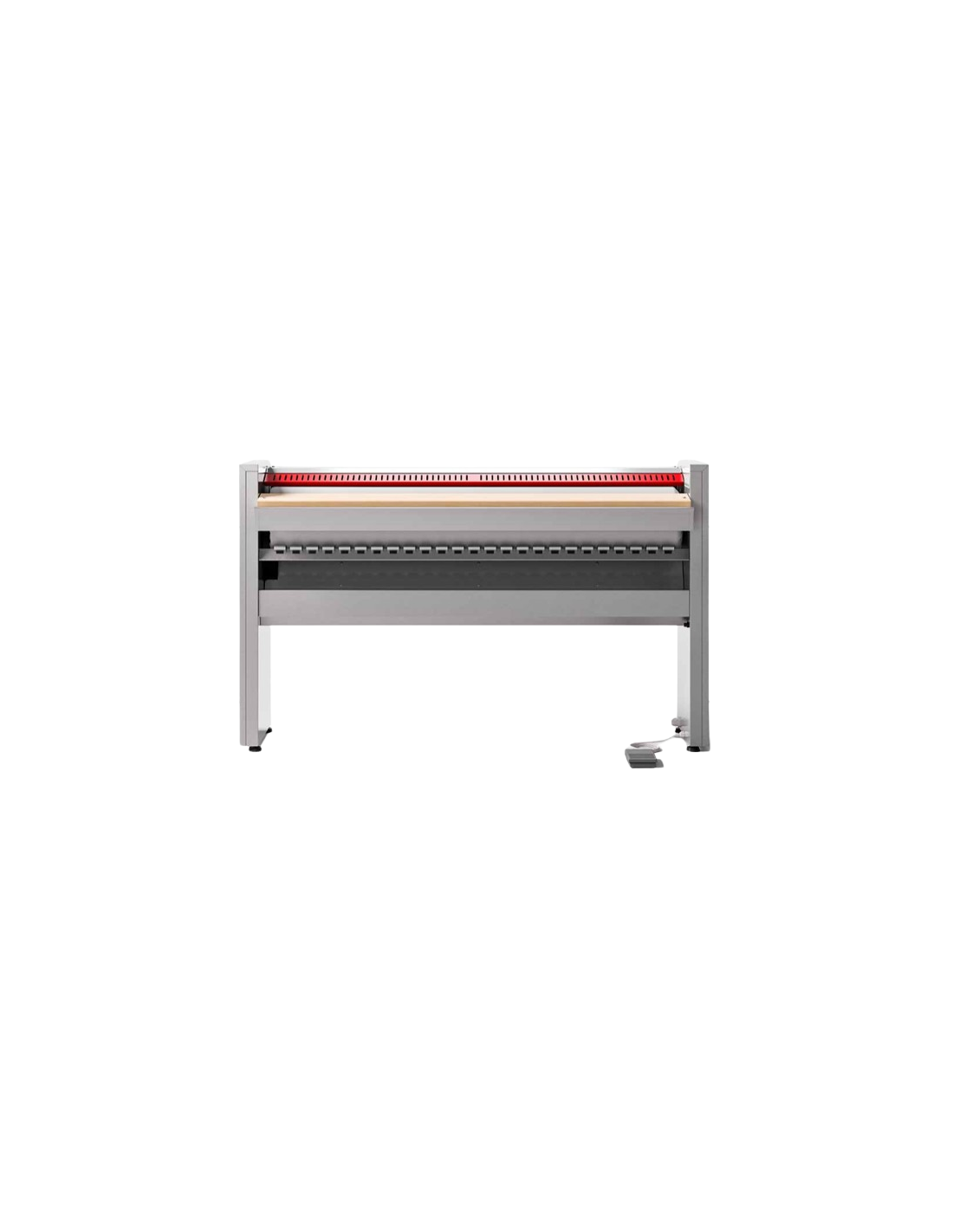 | Struttura autoportante realizzata in lamiera plastificata grigia con spalle laterali di ridotte dimensioni a vantaggio della larghezza del rullo utile per le operazioni di stiro | |