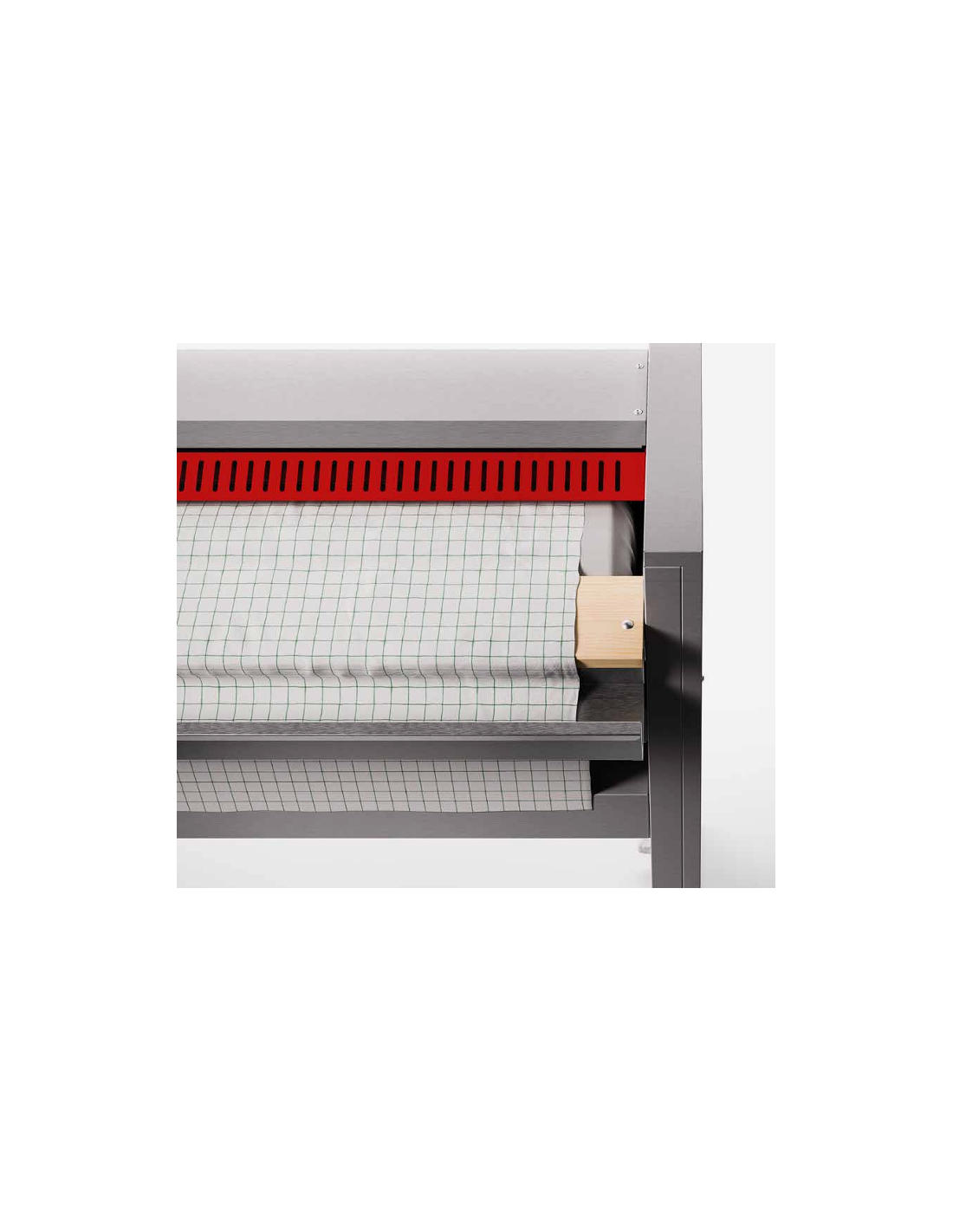 | Asse in legno per facilitare l'introduzione della biancheria con angolo regolabile così da adattarsi all'altezza dell'operatore | |