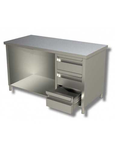 Tavolo a giorno AISI 430 - Profondità 70 - Cassetti a destra