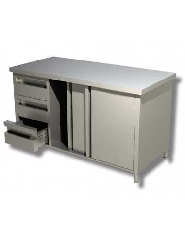 Tavolo armadiato AISI 430 - Porte scorrevoli - Profondità 60 - Cassettiera sinistra