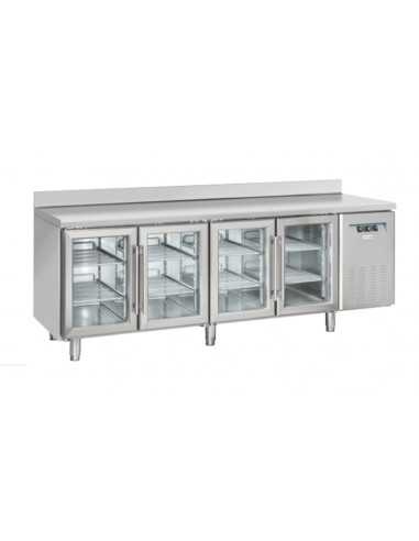 Tavolo refrigerato - N. 4 porte vetro - Alzatina - cm 225 x 62.5 x 95 h