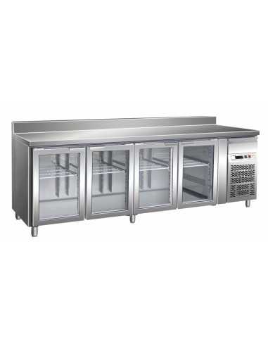 Tavolo refrigerato - Alzatina - Lavello - N. 2 porte vetro - cm 142 x 70 x 115/120 h