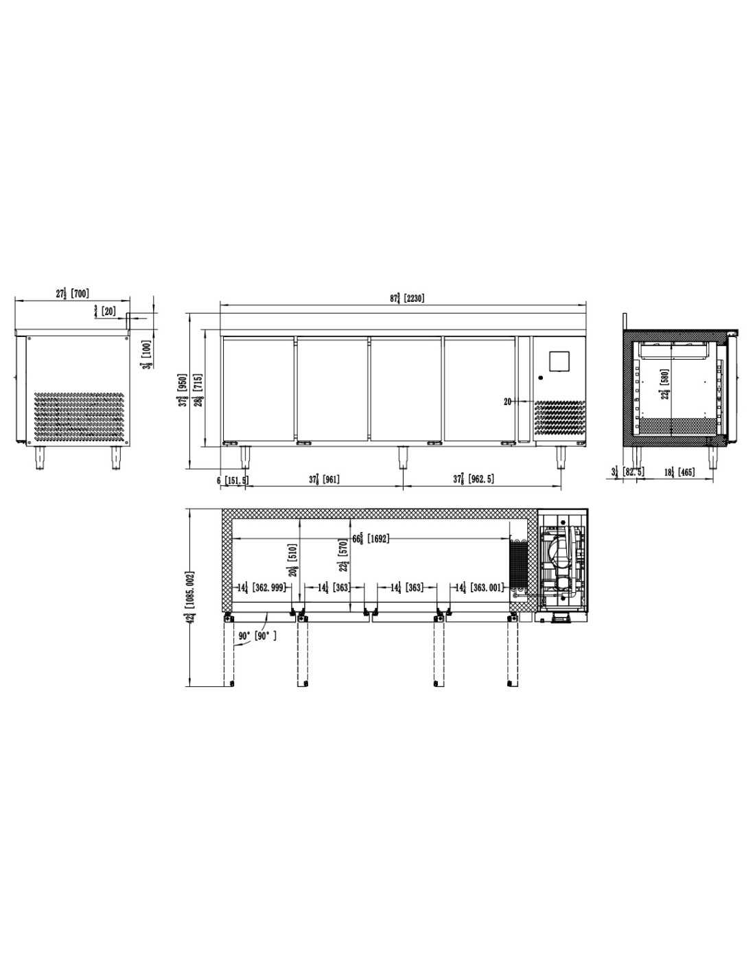 Saladette refrigerata con 4 cassetti - cm 90 x 70 x 94.3 h