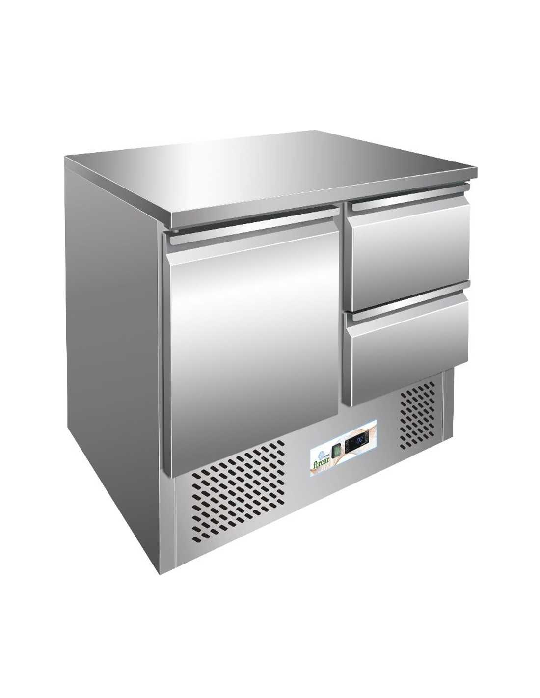 Saladette refrigerata - Mod. G-S9012DS - Temperatura +2°/+8°C - N. 1 porta + 2 cassetti - Gastronorm GN 1/1 (cm 53 x 32.5) - Capacità litri 230 - Struttura in acciaio inox AISI 304 - Refrigerazione statica - Dimensioni cm 90 x 70 x 85 h
