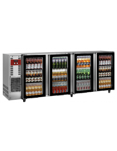 Tavolo refrigerato - Modello TAVX4G-R2 - N.4 porte a vetro - Capacità 783 lt - Temperatura +1 +8°C - Dimensioni cm 267.5 x 56.5 x 89/90.5h