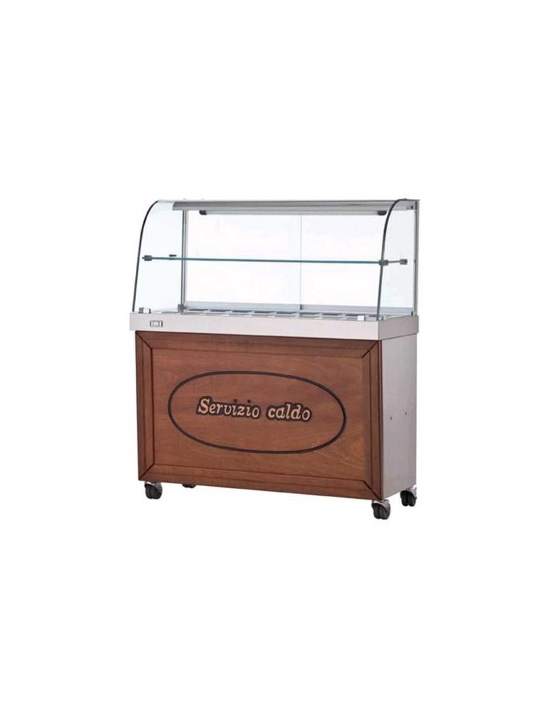 Vetrina calda con vetri curvi - Carrello e mensola - cm 150 x 70 x 140h
