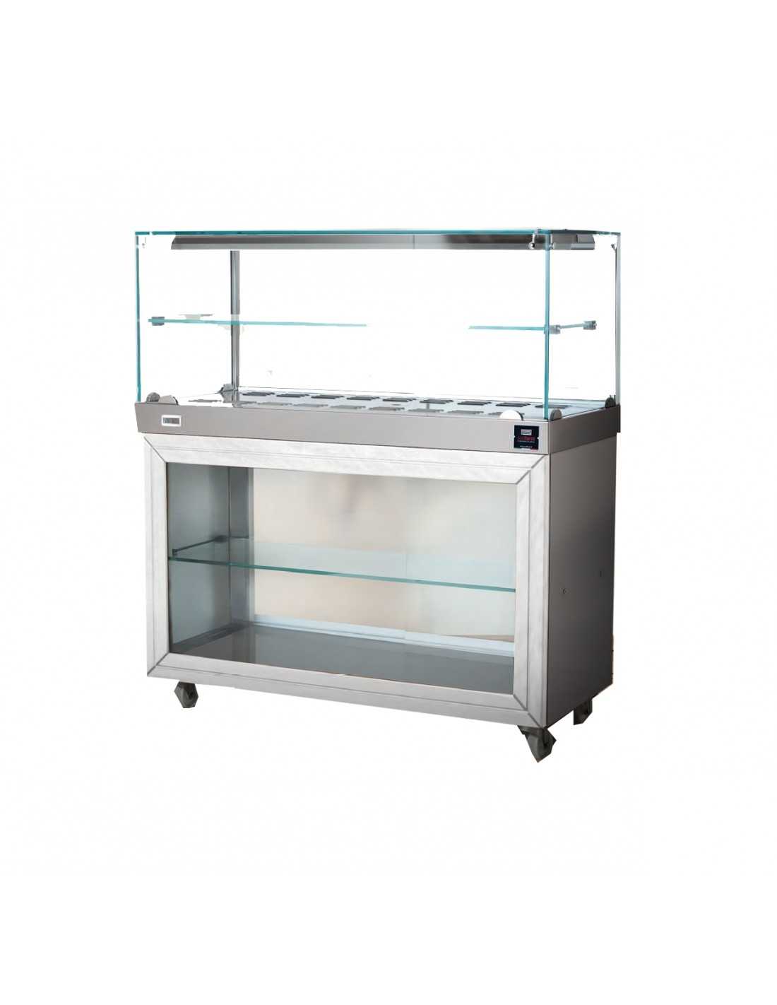 Vetrina calda con vetro dritto - Carrello e mensola - cm 130 x 70 x 135h
