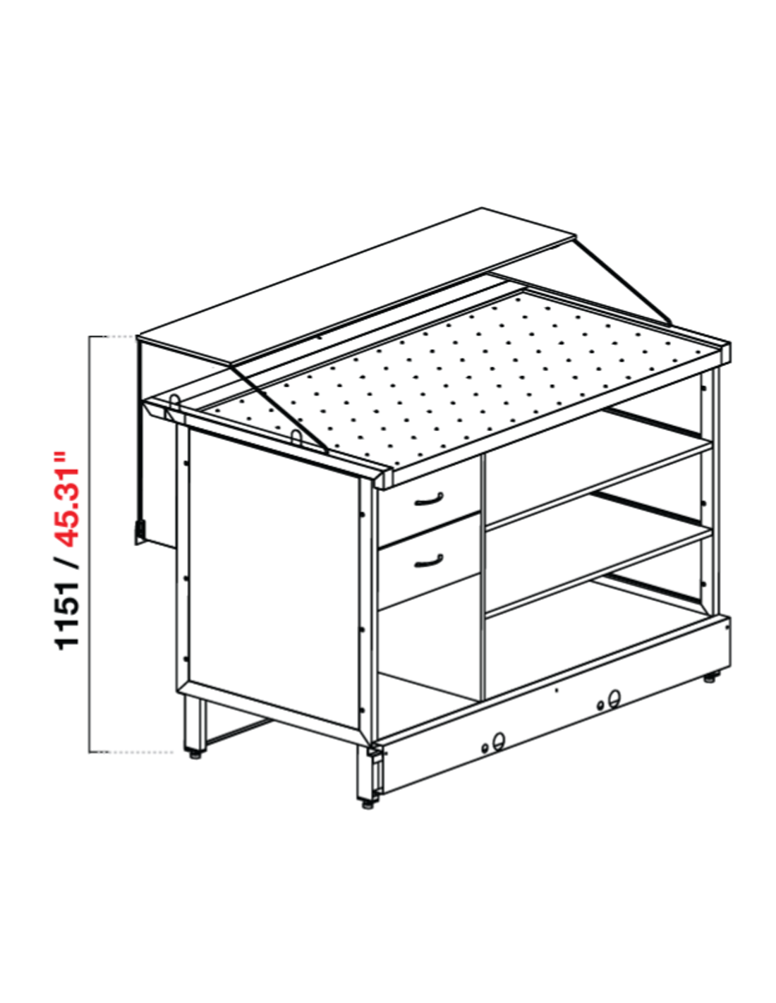 | Piano lavoro lato operatore profondo 193 mm in acciaio inox AISI 304 finitura Scotch-Brite | |