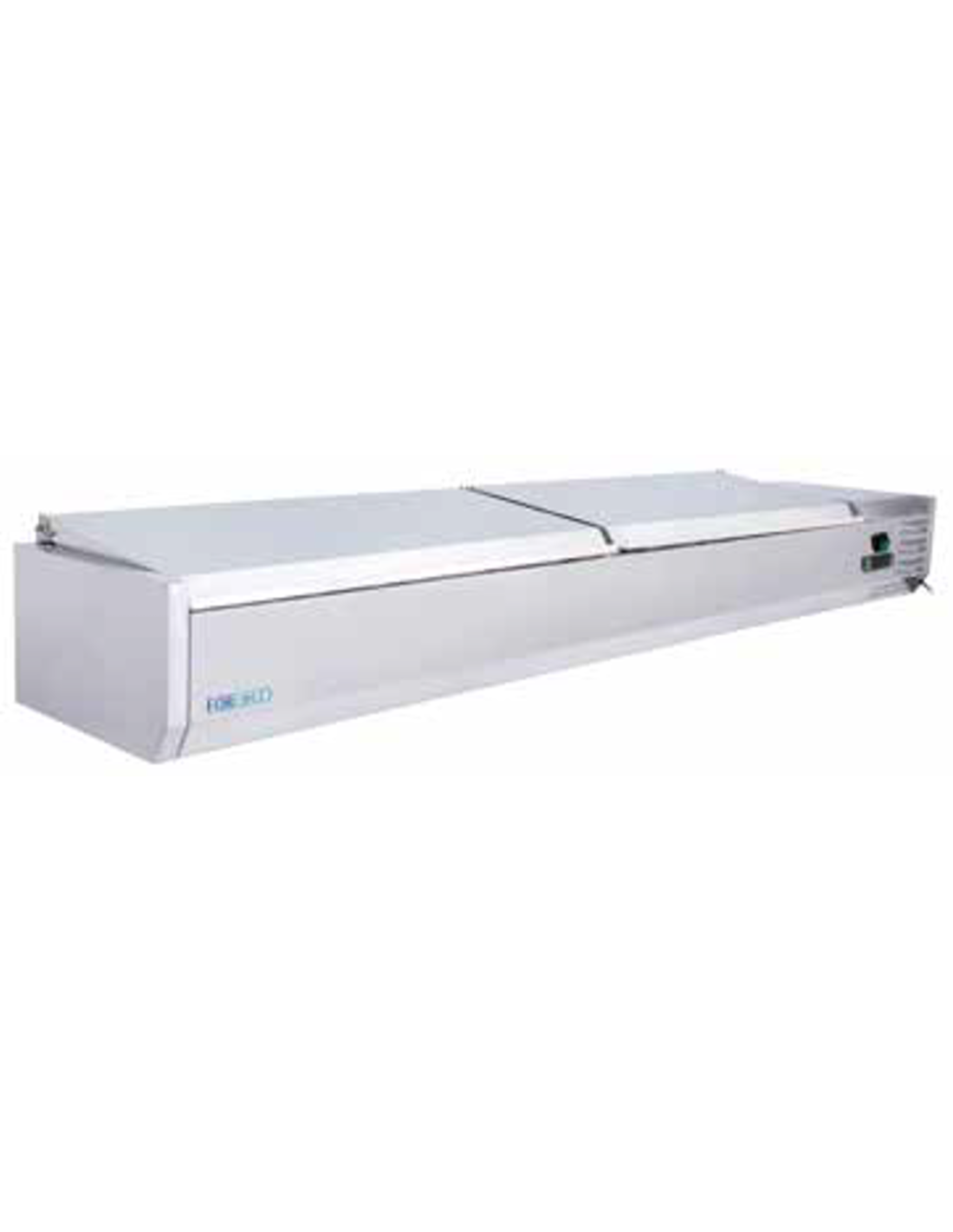 Vetrina porta ingredienti - Modello G-VRX2000-380SS - Struttura e coperchio in acciaio inox - Capacità 9 x GN 1/3 - Dimensioni cm 200 x 39.5 x 28.5/61.7 h